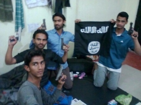फोटो में सबसे आगे आतिफ मुजफ्फर है, उसके पीछे दोनों हाथों मे पिस्टल लिए मोहम्मद फैसल। उसके पीछे बैनर पकड़े (बड़े बाल और स्काई ब्लू शर्ट में ) सरगना सैफुल्लाह है, जो हाजी कालोनी में मुठभेड़ में मारा गया था। दूसरा बैनर पकड़े उसका साथी है।